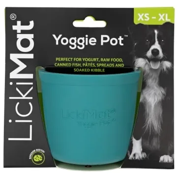 Show more Introducing the LICKIMAT Yoggie Pot, the ultimate distraction and enrichment tool that turns mealtime into an exciting adventure for your furry friend! This innovative licking mat is designed to provide your dog with a fun, engaging experience that stimulates their natural licking instinct while also promoting slow feeding habits. Made from eco-friendly, plant-based natural rubber, the Yoggie Pot is not just a treat dispenser; it's a multifunctional feeding solution suitable for dogs of all sizes.