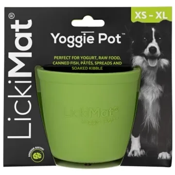 Show more The LICKIMAT Yoggie Pot is an ingenious solution for dog parents seeking to enhance their pet's well-being while providing a delightful distraction. Crafted from top-quality, plant-based natural rubber, this vibrant licking mat doubles as a treat dispenser and slow feeder that will keep your furry friend engaged and entertained. Designed to promote healthy licking behavior that releases endorphins, the Yoggie Pot transforms mealtime into a fun, enjoyable experience. Imagine your dog eagerly working to savor a mix of peanut butter, yogurt, or even frozen smoothies through the cleverly designed grooves and bumps that line the bowl's interior. This unique design allows your pup to engage with their food in a way that reduces boredom and encourages mental stimulation—perfect for dogs of all shapes and sizes, from Chihuahuas to Great Danes!