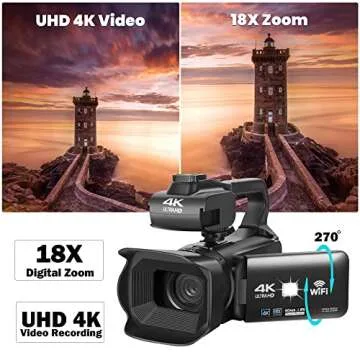 Show moreIntroducing the Lierhyt 4K Video Camera Camcorder, your ultimate digital companion for capturing stunning visuals and unforgettable moments. This cutting-edge camcorder is equipped with a 1/2-inch CMOS sensor, enabling you to record in remarkable 4K resolution at 60 frames per second and take photos up to 64MP. With its 18x digital zoom and built-in fill light, you're all set for photography in various lighting conditions, making it ideal for vlogging, live streaming, and family gatherings.