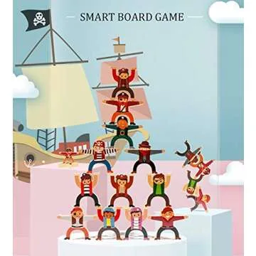 Lierpit Pirate Wooden Stacking Toys Balance Block Set Children Troupe 3D Toys