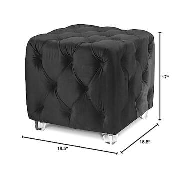 Show moreIntroducing the Lievo Carmen Cube Ottoman, a stunning piece of furniture that elegantly combines functionality with style. Crafted from luxurious velvet, this ottoman adds a touch of sophistication to any room. Its tufted design not only enhances its visual appeal but also ensures comfort, making it perfect for resting your feet after a long day. The striking clear acrylic legs provide a contemporary contrast to the plush seating, creating an eye-catching centerpiece in your living space. Available in a sophisticated black hue, this ottoman is versatile enough to complement various interior decor styles, from modern to classic.