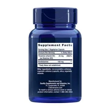 Life Extension Benfotiamine with Thiamine, Fat & Water Soluble Vitamin B1, Gluten Free, Healthy Metabolism, Non-GMO, Vegetarian, 100 mg, 120 Vegetarian Capsules