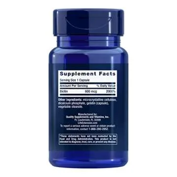 Life Extension Biotin 600 mcg Vitamin B7 Support Supplement for Beautiful Hair, Nails & Beyond – Gluten-Free, Non-GMO - 100 Capsules