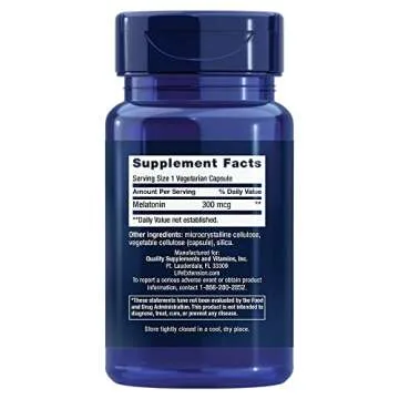 Life Extension Melatonin, 300 mcg, gentle sleep support, healthy circadian rhythms, cellular defense, gluten-free, non-GMO, vegetarian, 100 capsules