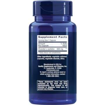 Life Extension N-Acetyl-L-Cysteine (NAC) - 60 Veggie Caps 600mg Natural Support for Respiratory & Liver Health