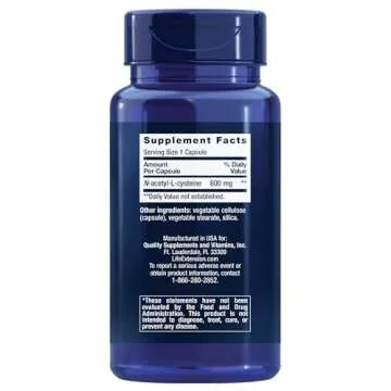 Each gluten-free capsule is packed with a generous 600 milligrams of N-Acetyl-L-Cysteine, designed for rapid absorption to deliver maximum benefits effectively. Sourced with care, this product includes only the finest raw ingredients, ensuring that you receive the purity and potency your body deserves. Most of Life Extension's products are non-GMO, gluten-free, and manufactured in the USA, and you can feel secure knowing a Certificate of Analysis accompanies each batch of their products.