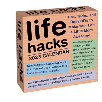 Show more Discover how to enhance your everyday life with the Life Hacks 2023 Day-to-Day Calendar. Each day presents a new tip or trick designed to inspire creativity and efficiency, from ingenious DIY projects to practical solutions that make everyday tasks easier. This calendar is not just a source of knowledge; it’s a delightful companion that engages you every day with fun facts, riddles, Sudoku puzzles, and brain teasers on the back of each page. Whether you place it on your desk or hang it on your wall, it’s the perfect way to cultivate a more awesome, informed lifestyle throughout the year.