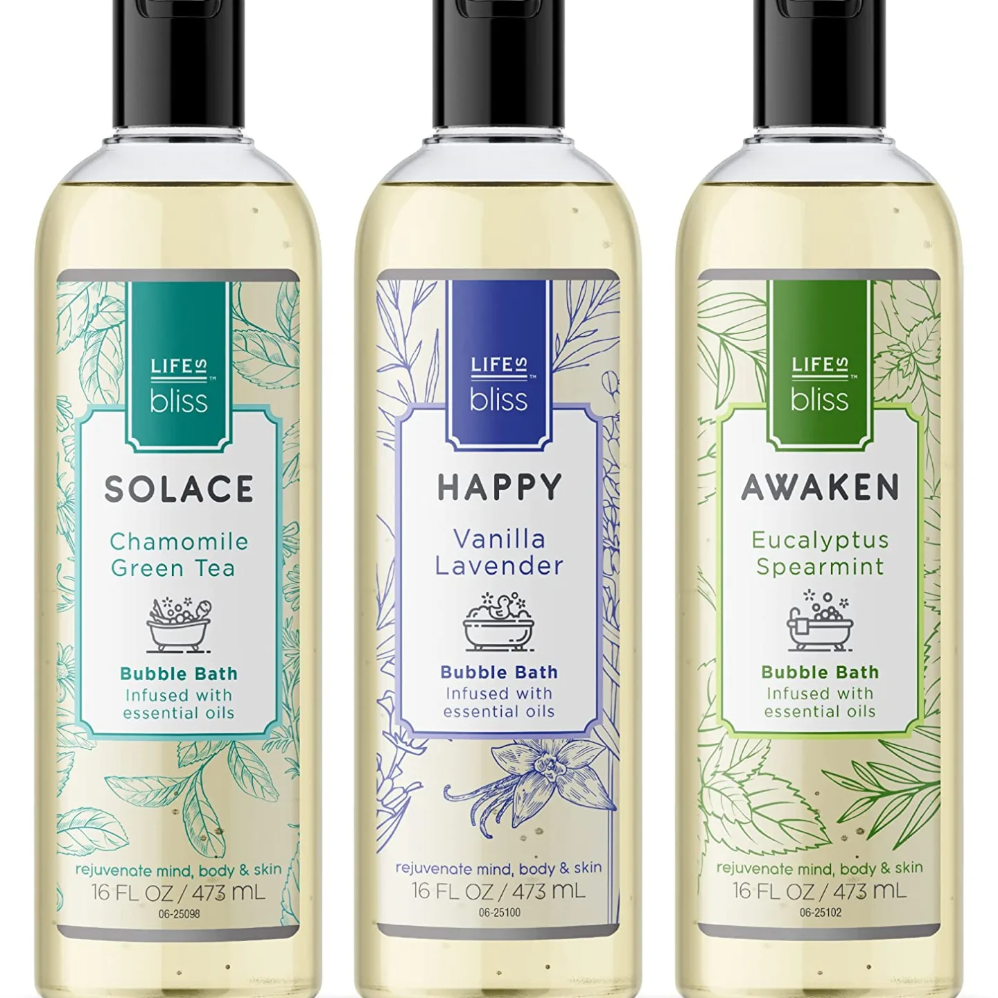 Life is Bliss | 3 Fresh & Soothing Scents | Variety Pack | Liquid Bubble Bath 16 fl oz