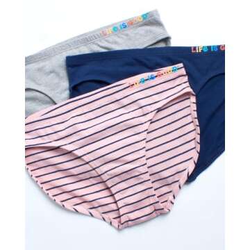 Life is Good Women's Bikini Underwear – 3 Pack Soft Stretch Bikini Briefs for Women - Breathable Casual Womens Panties (S-XL), Size Large, Pink StripeGreyBlue