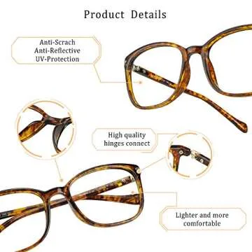 LifeArt Anti Fog Blue Light Blocking Glasses, Anti Eyestrain, Computer Reading Glasses for Women and Men, Anti Glare, Upgraded Anti Fog Lens (Tortoise, No Magnification)