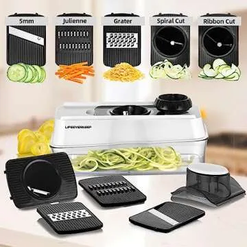 Lifeeverkeep Mandoline Slicer - Vegetable Slicer with 5 Blades, Spiralizer Veggie chopper, Food Chopper with Container, Slicer, Cutter