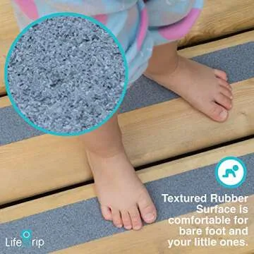 Show more Introducing the LifeGrip Textured Rubber Surface Anti-slip Safety Tapes, the perfect solution for enhancing safety in both indoor and outdoor environments. Crafted from recycled rubber particles, these tapes provide a comfortable and secure footing, far superior to traditional PU material thanks to its unique anti-slip technology. The versatility of LifeGrip makes it an ideal choice for everyone, especially babies and kids: ensuring their safety when they are at play or walking around the home.