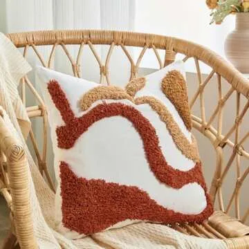 Show more Introducing the lifein 18x18 Pillow Covers—a stunning blend of artistic expression and functionality. This tufted bohemian throw pillow cover is designed with a distinctive abstract minimalism style that seamlessly complements any home décor. Crafted with meticulous attention to detail, it adds an artistic flair while providing ultimate comfort. The cover showcases not just an eye-catching design but also exceptional quality, ensuring it exceeds your expectations. With classic color choices, handcrafted weaving, tufting, and stylish tassels, this pillow cover is an exquisite addition to any space.