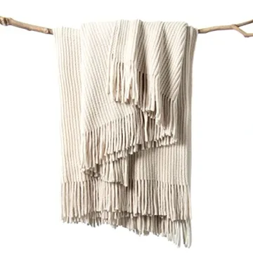 Featuring a fantastical design with a neutral solid knit and charming rustic farmhouse-style fringes, this throw blanket adds an artistic boho accent to any room in your home. Its elegant cream/white color complements various interior styles while subtly elevating your space with a touch of sophistication. Notably versatile, the LIFEIN throw functions as a cozy winter blanket, a lightweight summer covering, and a stylish accessory year-round, enhancing your decor for fall, spring, and beyond.