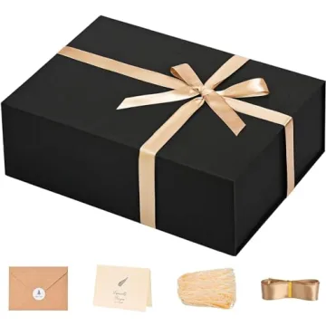 Discover the elegance and functionality of our premium magnetic gift box, expertly crafted by LIFELUM. Measuring a generous 13x10x5 inches, this sophisticated black gift box transcends mere packaging to become a stunning centerpiece for your gifting occasions. Its magnetic closure design provides a seamless opening and closing experience, ensuring that your gift looks immaculate every time. Made from high-strength cardboard and wrapped in luxurious paper, this box promises durability and...