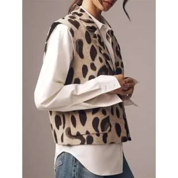 LifeShe Leopard Flannel Vest Women Casual Cheetah Sleeveless Blazer Winter Button Down Jacket with Pockets