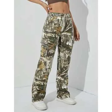 LifeShe Women's Oversized Camo Cargo Pants Trousers Workout Sweatpants Camouflage Army Fatigue with Pockets