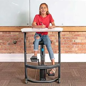Show moreThe LifeSpan Unity Junior Bike Desk is designed to revolutionize the way kids learn and stay engaged, making it the perfect addition to any classroom or home-school environment. This innovative pedal desk not only promotes kinesthetic learning but also channels fidgeting into productive movement, helping to reduce classroom disturbances. With its sleek white desktop and sturdy black frame, it not only enhances the aesthetic of any space but also supports an active learning environment. Suitable for students between 4'6" and 5'10" in height, the Unity Junior adapts easily to fit a range of learners, ensuring that everyone stays active and focused. What's more, this bike desk is highly versatile, allowing for multiple formations to cater to different teaching styles and group activities.