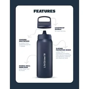 LifeStraw Go Series — Insulated Stainless Steel Water Filter Bottle for Travel and Everyday Use Removes Bacteria, Parasites and Microplastics, Improves Taste, 24oz Laguna Teal