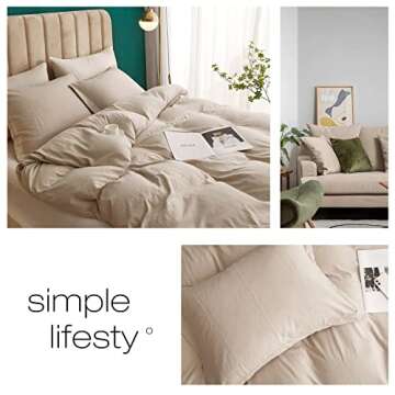LifeTB Beige Duvet Cover Washed Microfiber 3 Piece Bedding Sets Boho Tan Comforter Solid Color Khaki Simply Style Full with Zipper Closure Ties, Full(80''x90'')