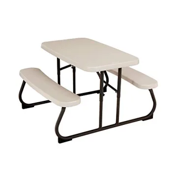 Show moreIntroducing the ultimate solution for your child's outdoor and indoor playtime needs: the Lifetime Kids Picnic Table. This remarkable table is constructed from High Density Polyethylene, featuring impact-resistant corners, ensuring lasting strength and durability. It's thoughtfully designed to comfortably seat up to four children at once, allowing them to enjoy meals, crafts, and creative play together. The UV-protected tabletop and benches resist stains and wipe clean with ease, making it perfect for those delightful messy play activities.