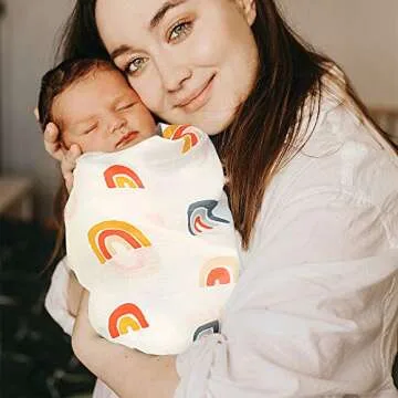 LifeTree Muslin Swaddle Blankets, Rainbow Print Bamboo Cotton Baby Swaddle Blankets Unisex for Girls and Boys, Super Soft, Breathable, Lightweight, Large 47x47inches