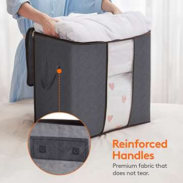 Lifewit Clothes Storage Bag 90L Large Capacity Organizer with Reinforced Handle Thick Fabric for Comforters, Blankets, Bedding, Foldable with Sturdy Zipper, Clear Window, 3 Pack, Grey