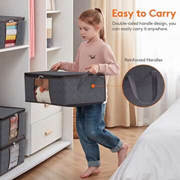 Lifewit Clothes Storage Bag Foldable Storage Bin Closet Organizer with Reinforced Handle Sturdy Fabric Clear Window for Sweaters, Coats, T-shirts, Blankets, 6 Pack, Gray