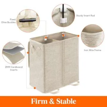 Lifewit Double Laundry Hamper with Lid and Removable Laundry Bags, Large Collapsible 2 Dividers Dirty Clothes Basket with Handles for Bedroom, Laundry Room, Closet, Bathroom, College, Beige