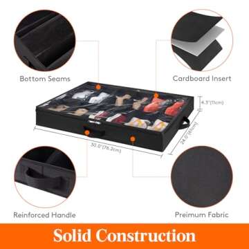 Show more Discover the Lifewit Under Bed Shoe Storage Organizer Set, the perfect solution for keeping your footwear collection tidy and accessible! Designed with a keen eye for functionality and style, this organizer set includes two spacious containers, each with the capacity to hold up to 12 pairs of shoes, making it ideal for shoe enthusiasts and families alike. Made from high-quality 2mm cardboard with robust reinforced handles, these organizers promise durability while maintaining a low-profile design that effortlessly fits under your bed. The innovative dustproof clear window lets you see your shoes at a glance, ensuring you can choose your perfect pair without any hassle.