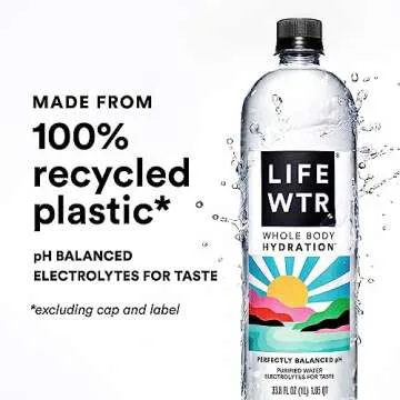 LIFEWTR Premium Purified Water, pH Balanced with Electrolytes, 100% recycled plastic bottles, 23.7 Fl Oz Flip Cap Bottles, 700 mL (Pack of 12)