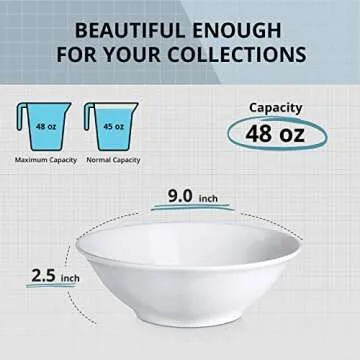 Show moreIntroducing the LIFVER 48 oz White Ceramic Bowls – the perfect solution for all your dining needs! Designed with versatility in mind, these large 9" x 9" x 2.5" deep bowls are crafted to serve a multitude of culinary delights. Whether you’re enjoying a hearty soup, a fresh salad, a plate of pasta, or a comforting bowl of pho, these bowls can easily accommodate all your kitchen requirements. Their generous capacity of 48 ounces means you can serve family-style dishes or generous helpings without a second thought.