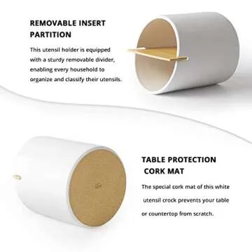 LIFVER 7.2″ Large Stable Kitchen Utensil Holder - Stylish Ceramic Organizer with Removable Divider