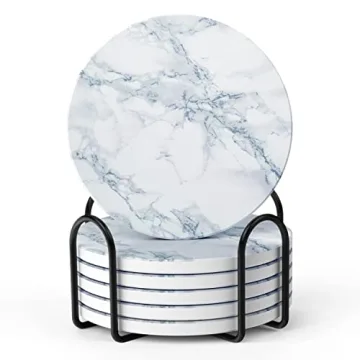 Introducing the stunning LIFVER Coasters for Drinks, a truly elegant accessory for any home. This set of six coasters is designed with practical beauty in mind, featuring a chic white marble-style appearance that not only protects your surfaces but also elevates your home decor. Each coaster boasts a generous 4-inch diameter and a substantial 0.27-inch thickness, making them ideal for an array of cups and glasses, be they coffee mugs or tall...