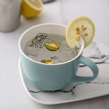 LIFVER Large Coffee Mug, 17 Ounces Jumbo Porcelain Soup Mug of Mermaid Art Pattern Mug for Cappuccino, latte, Soup, Cereal