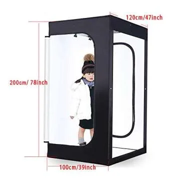 Light Box Photography LED Photo Studio Large Lightbox Professional 47x39x78 inch Dimmable Video Continuous Lighting Cube Shooting Tent Kit for Product Photography with Blue/White/Black PVC Backgrounds