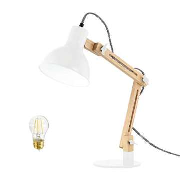 Show moreIntroducing the **Light Society Galvan LED Task Table Lamp**, a stunning blend of modern design and practical functionality. Crafted with a solid natural wood body, this lamp highlights an elegant metal shade that complements its industrial style. The black and white fabric cable adds a touch of sophistication. This lamp is not just about looks — it includes a **4 watt LED energy-saving bulb**, making it an eco-friendly lighting choice. With its versatile and adjustable flexible swing arms, you can easily position it at varying angles to illuminate your workspace just right. Whether you're reading a book, working on your laptop, or creating art, the Galvan LED Task Table Lamp is here to brighten your space efficiently and stylishly.