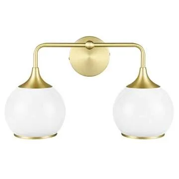 Show moreIntroducing the Light Society Lia 2-Light Vanity Light, designed to illuminate your space with an enchanting blend of elegance and modern charm. Crafted from premium materials, this exquisite fixture features a visually stunning brushed brass finish paired with soft opal glass shades that create an inviting glow. Each light is designed to house two E26 bulbs, reaching a maximum of 60W, giving you the ultimate flexibility in brightness and ambiance. Although the bulbs themselves are sold separately, this allows you to tailor your lighting to fit different occasions, be it cozy evenings with friends or bright mornings while getting ready for the day.