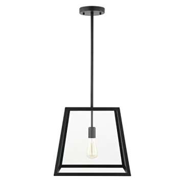 Show moreIlluminate your space with the exquisite Light Society LS-C103 Preston Pendant Lamp. This stunning modern industrial lighting fixture features a unique design with elegant glass panels that seamlessly blend style with functionality. Measuring 15.25 inches in width and length and standing tall at 65 inches, the Preston pendant is expertly crafted to serve as a captivating focal point in any room. Its sleek matte black finish, combined with clear glass, gives it a sophisticated edge, making it a perfect addition to both residential and commercial settings.
