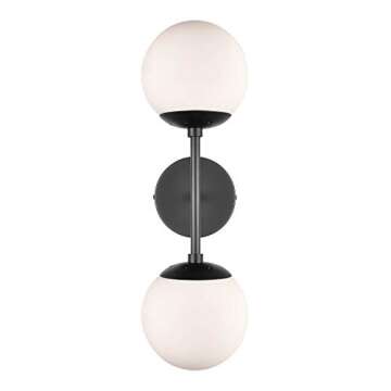 Light Society LS-W268-BK-WH Zeno Black and White Glass 2-Light Globe Wall Sconce, Mid Century Modern Retro Vintage Style