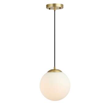 Show moreIntroducing the Light Society Zeno Globe Pendant - your new go-to lighting fixture that beautifully combines functionality with style. This stunning pendant light features a sleek matte white glass globe that effortlessly complements its chic brass finish, making it the perfect addition to any contemporary space. With dimensions of 10 inches in diameter and a height of 59 inches, this fixture provides a striking yet subtle presence. Its adjustable height (up to 48 inches) allows you to cater the pendant to your desired ceiling height, making it versatile for various settings, including homes and commercial spaces.
