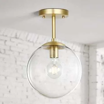 Light Society Zeno Globe Semi Flush Mount Ceiling Light, Matte White with Brass Finish, Contemporary Mid Century Modern Style Lighting Fixture (LS-C176-BRS-MLK)