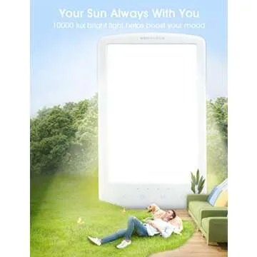 Show more Brighten up your day with this exceptional sun lamp that is designed to mimic the full spectrum of natural daylight. Crafted for those who often feel the weight of dark and dreary days, this lamp provides a vital boost to your energy, elevates your mood, enhances your focus, and improves your sleep. Whether you use it at home, in the office, or even while traveling, this therapy light can be your handy companion to combat Seasonal Affective Disorder (SAD) and leave you feeling revitalized.