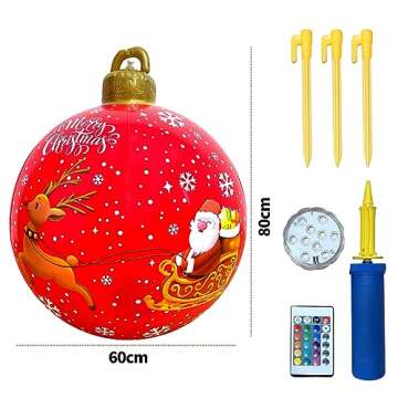 Show moreIlluminate your festive season with the enchanting Light Up PVC Inflatable Christmas Ball. This stunning outdoor decorative piece brings life to your holiday décor with its vibrant 16 color LED lights and remote control operation. Crafted from high-quality PVC, this large inflatable ball offers both durability and beauty, making it a perfect centerpiece for various celebrations. Its eye-catching design and glowing colors turn any backyard, lawn, or outdoor space into a winter wonderland, ensuring your Christmas celebrations are nothing short of magical.