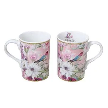 Lightahead Elegant Bone China Two Mugs set in bird design 11.2 oz each cup in attractive gift box, Pink