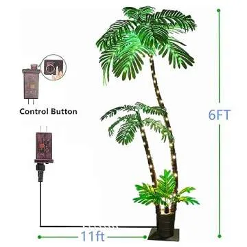Lighted Artificial Palm Tree for Outside Patio,6 FT Lighted Christmas Palm Tree Decorations Decor,Fake Palm Trees Pool Decorations Outdoor for Tiki Bar Tropical Party Housewarming