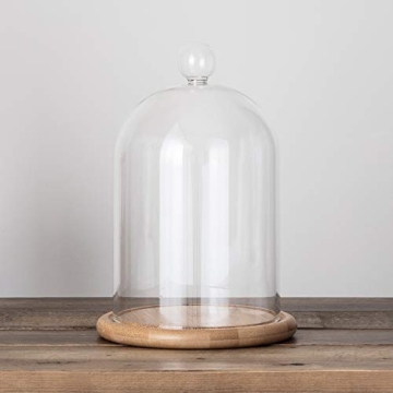 Lights4fun Glass Cloche Bell Jar with Bamboo Base - Perfect for Seasonal Decor