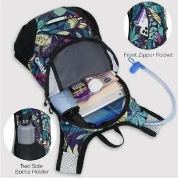 Lightweight Hydration Backpack, Running Backpack with 2L Water Bladder, Hydro Water Daypack for Cycling Hiking Rave for Men Women