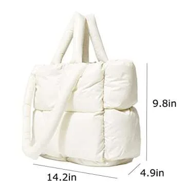 Lightweight Puffer Tote Purse Quilted Women Luxury Handbag Soft Shoulder Bag (White)
