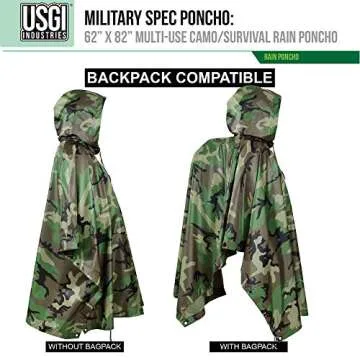 Lightweight Tactical Ripstop Camouflage Rain Poncho for Hiking, Hunting, Survival - USGI Style
